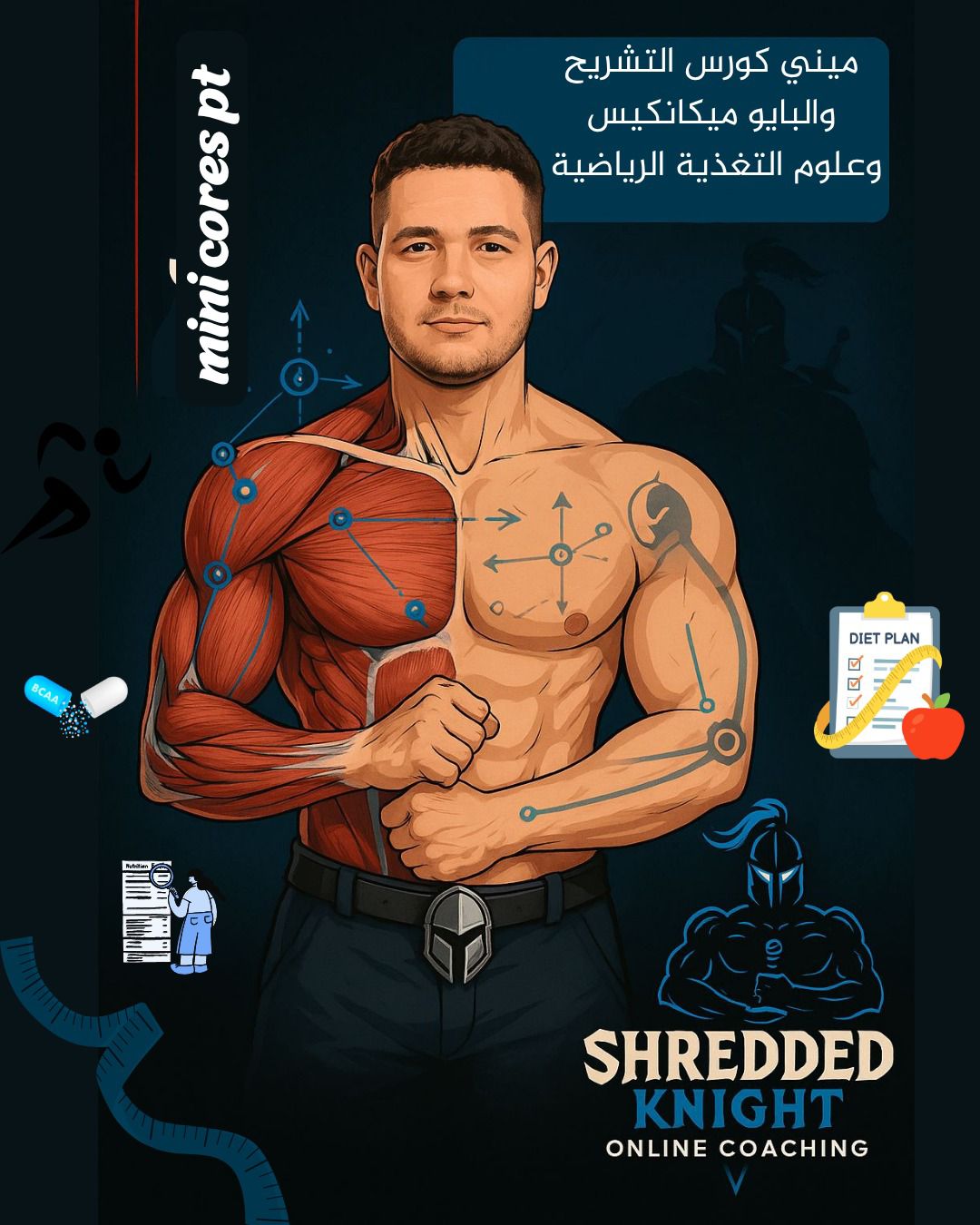 "شـركة Shredded Knight أقوى كيان تدريبي في الوطن العربي، لأننا نؤمن أن كل شخص فريد ولا يوجد اثنان متشابهان. نحن لسنا مجرد مكان للتدريب، بل كيان متكامل يضعك في رحلة خاصة نحو أفضل نسخة من نفسك."