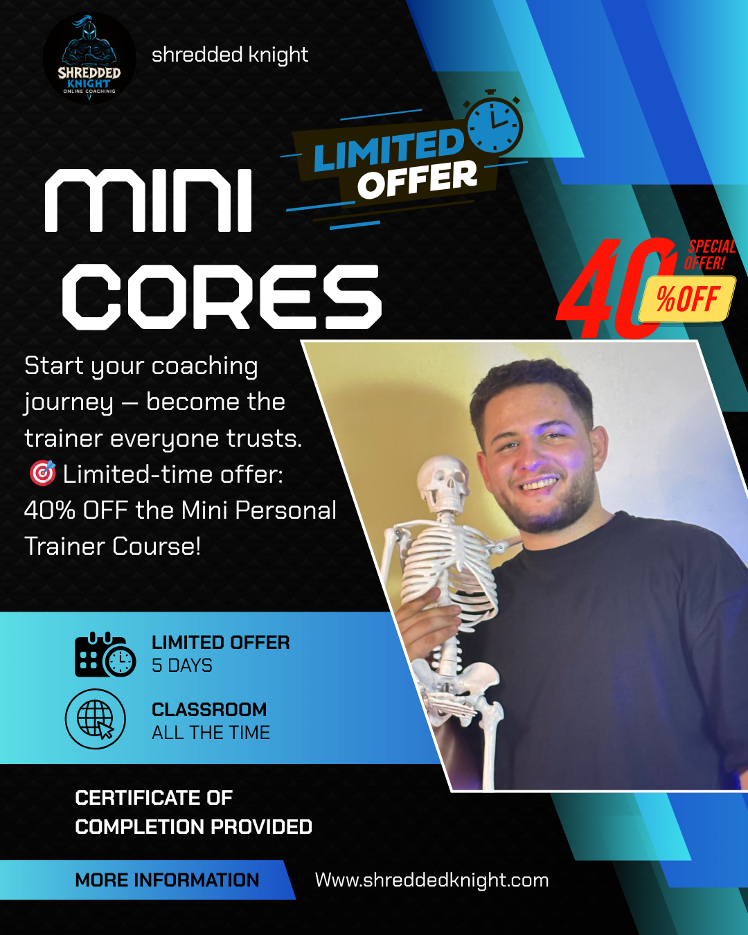 الميني كورس ده معمول مخصوص لكل حد عايز يبدأ مشواره في عالم التدريب الشخصي، سواء كنت مبتدئ خالص أو مدرب نفسك وعايز ترتقي لمستوى الاحتراف. هتتعلم من الصفر لحد الاحتراف كل أساسيات التدريب والتغذية بشكل عملي وسهل التطبيق، مع نصائح وتقنيات المدربين المحترفين اللي هتفرق معاك فعلاً في مسيرتك